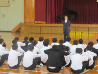 昨日の午後に体育館で、今治市地域おこし協力隊の方を講師にお迎えして、1年生ふるさとキャリア教育講演会が行われました。